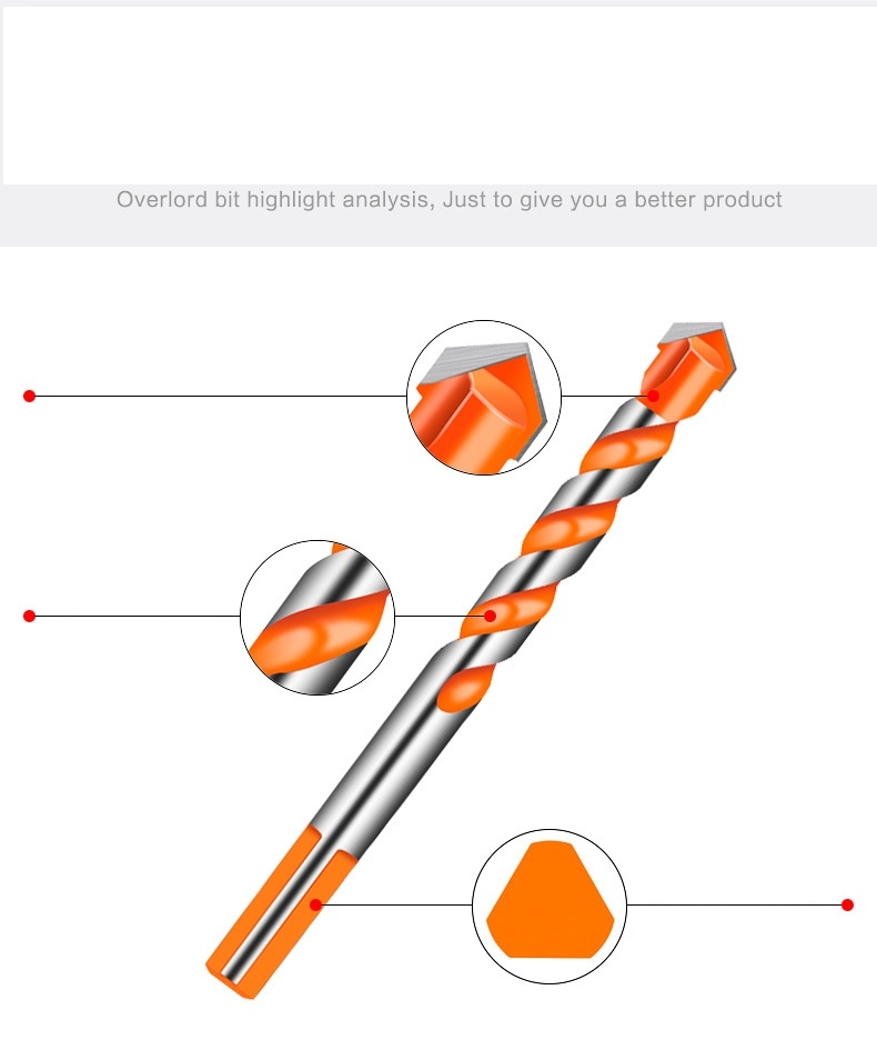 MŨI KHOAN ĐA NĂNG VỚI HỢP KIM CHẤT LƯỢNG CAO HÌNH TAM GIÁC, CÓ THIẾT KẾ CHỐNG TRƯỢT ĐỘC ĐÁO. ĐƯỢC SỬ DỤNG KHOAN TRỰC TIẾP TRÊN NHIỀU VẬT LIỆU: GẠCH NUNG, TƯỜNG XÂY, GỖ, KIM LOẠI MỎNG, ĐỒNG, HỌP KIM NHÔM. VỚI VẬT LIỆU CỨNG: GẠCH MEN, KÍNH, ĐÁ HOA CƯƠNG... CẦN SỬ DỤNG NƯỚC ĐỂ LÀM MÁT MŨI KHOAN.